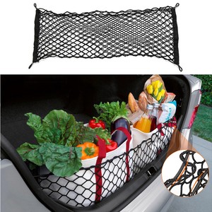 Rear trunk portable organizer coche sundries net storage elastic string mesh velcro bag resilient pouch.